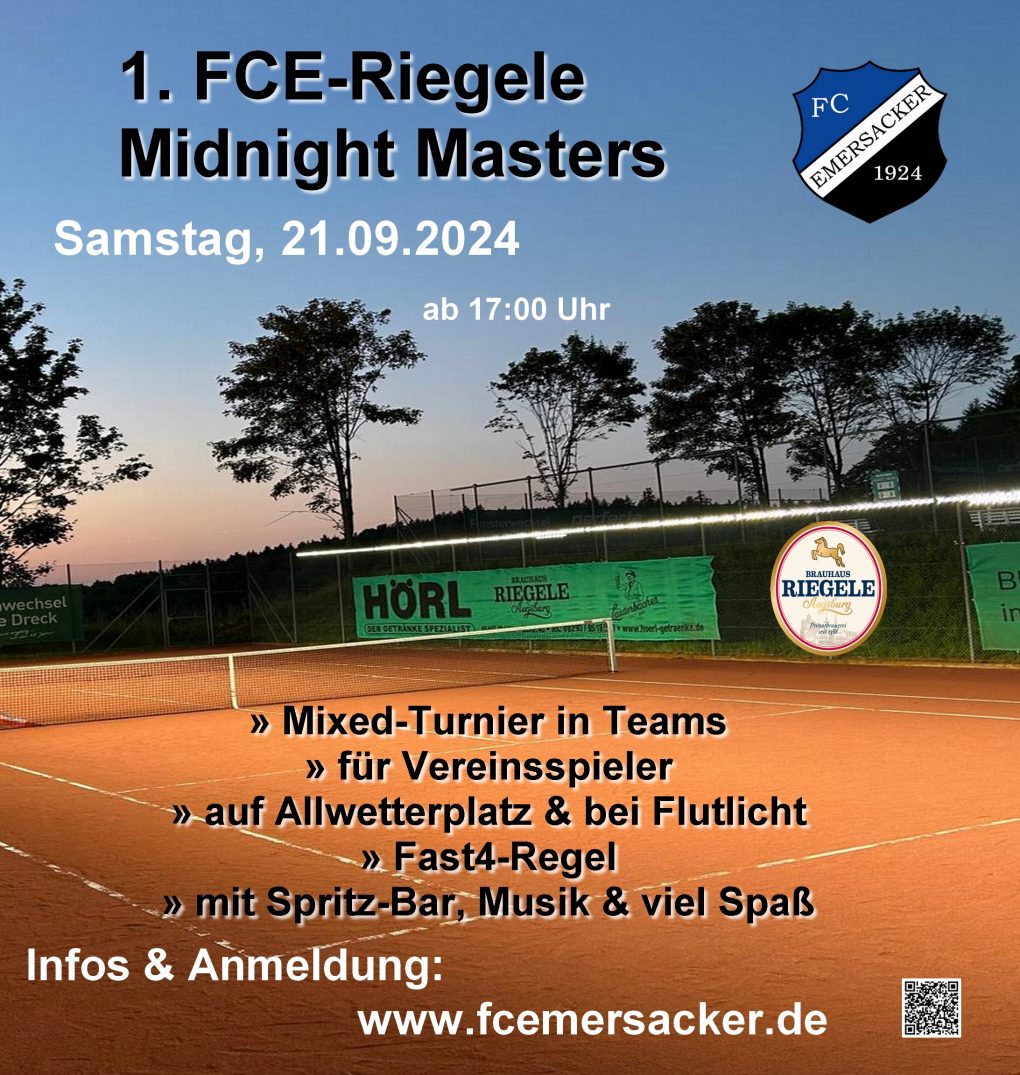 Freut Euch auf das 1. FCE-Riegele Midnight Masters der Tennisabteilung des FC Emersacker!