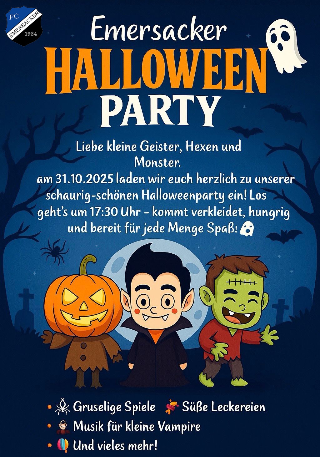 am 31.10.2025 laden wir euch herzlich zu unserer Halloweenparty im Sportheim Emersacker ein!