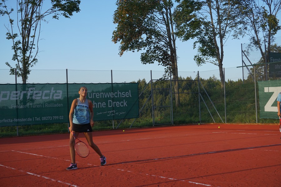 Bei den Junior/innen mit deren Trainer Jürgen Müller stand wieder die Doppelvereinsmeisterschaft auf dem Programm. In packenden Spielen bei teils tropischen Temperaturen setze sich am Ende Emma Müller vor Sebastian Peppler und Sara Kaim durch.